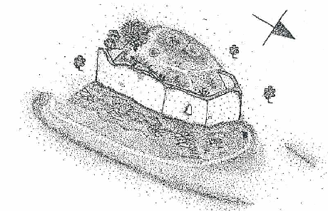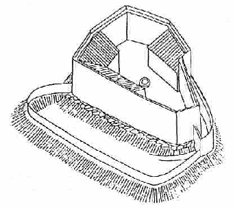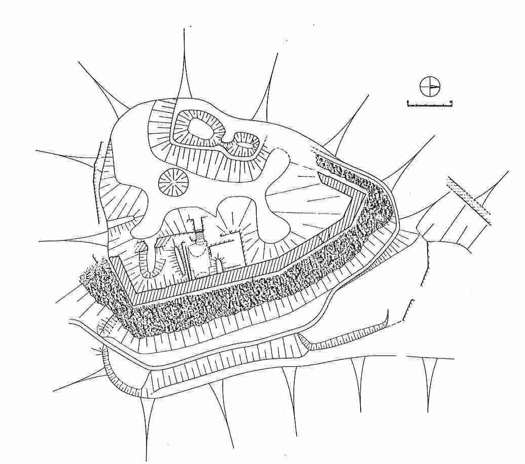 | Hmotová rekonstrukce původního hradu (Doc.PhDr. T. Durdík) | Stávající stav zříceniny (R.Dušek) |